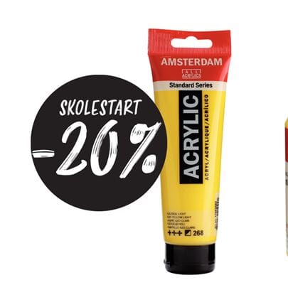 Skolestart - 20% rabatt på Amsterdam maling Fra 16. august og ut måneden har vi skolestartstilbud på Amsterdam akrylmaling. Du får 20% rabatt på alt fra Amsterdam hos oss. Du finner malingen her: https://www.hobbylageret.no/?PageID=74200