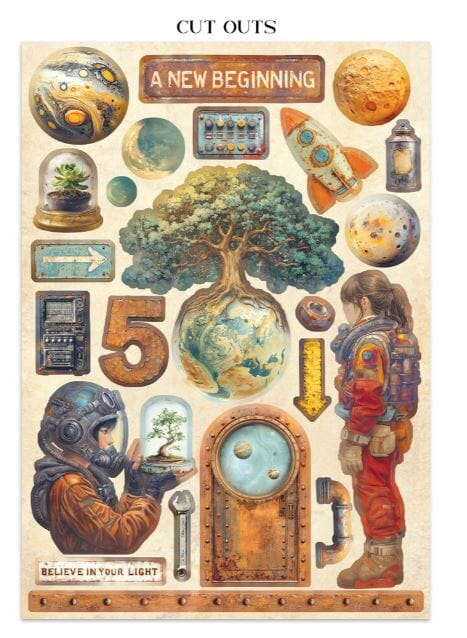 Stamperia A New Beginning Junk Journal Stickers, Backgrounds, Cut-Outs (SBJK16)