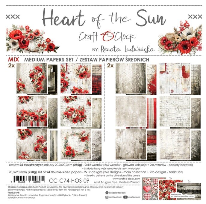 Craft O'Clock Heart of the Sun 8x8 Inch Medium Papers Set (CC-C74-HOS-09)