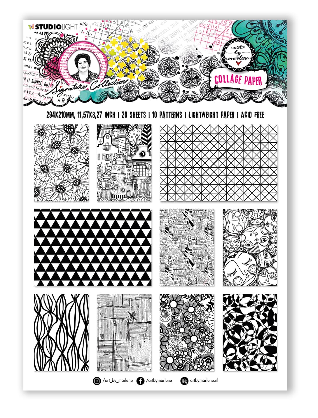 FORHÅNDSBEST. - ABM Collage Paper Black and White Signature Collection 210x294x5mm 20 SH nr.01