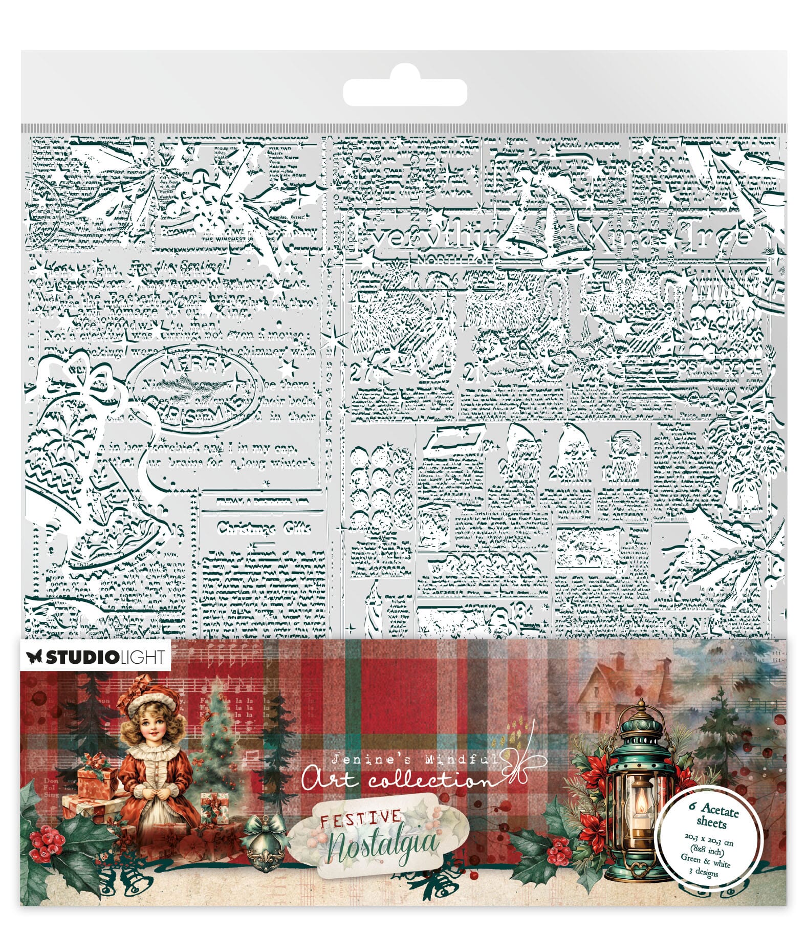 JMA Acetate sheets White & green Festive Nostalgia 203x203x2