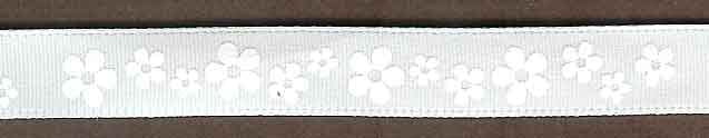 Bånd, HVit sateng med hvite blomster, 10mm x 20m
