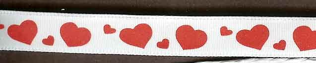 Bånd, hvitsateng med røde hjerter, 10mm x 20m