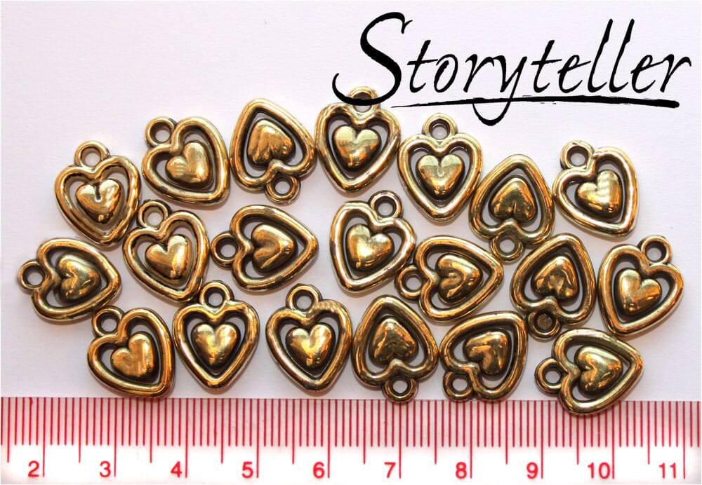 doble hjerter, 20stk antikk gull, plast