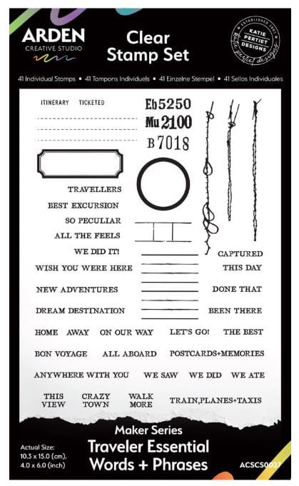 Arden Creative Studio Maker Series 4x6 Inch Clear Stamp Set Traveler Essential Words+Phrases by Katie Pertiet (ACSCS0027)