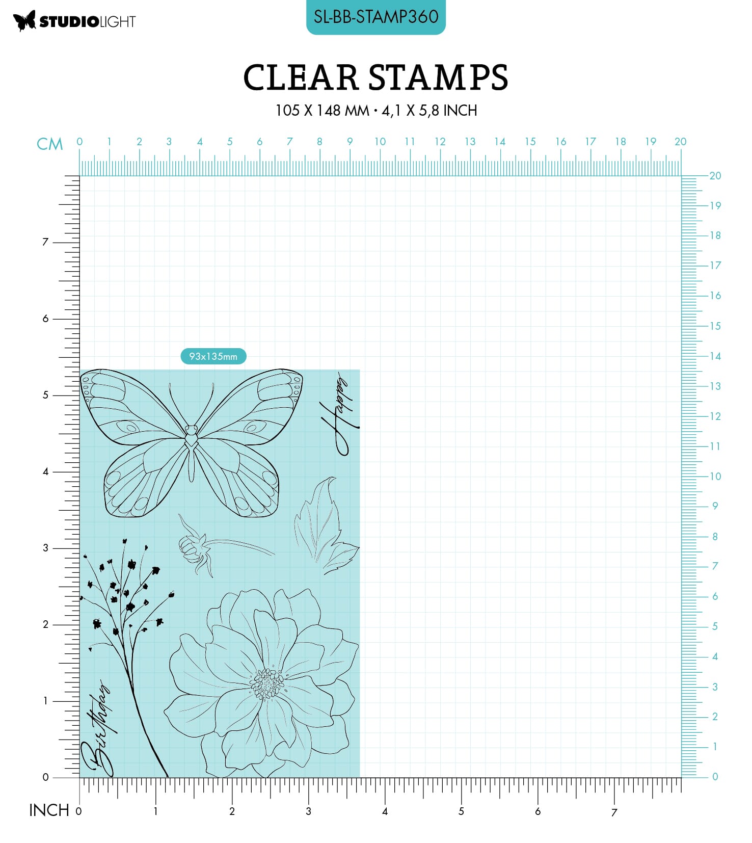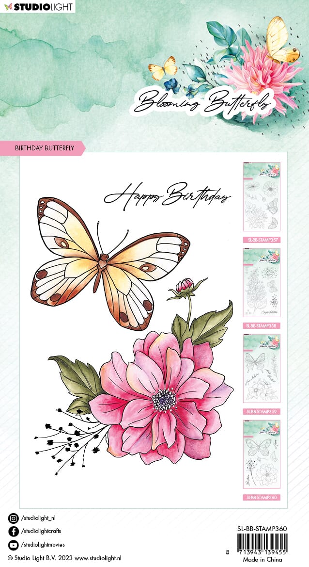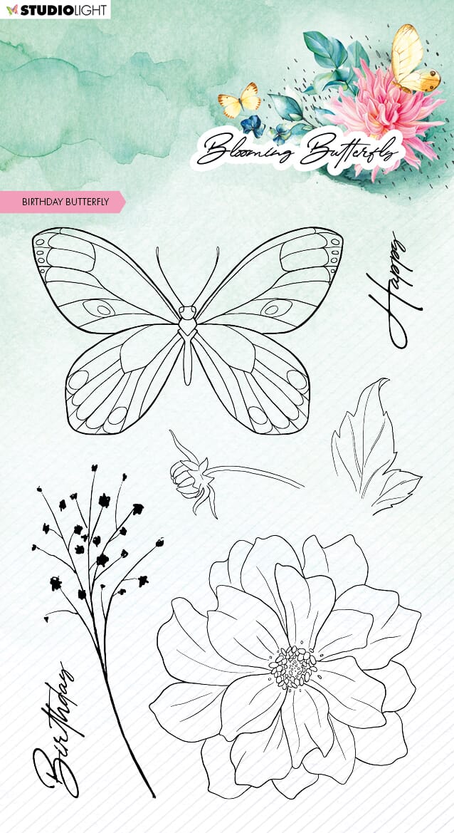 SL Clear Stamp Birthday butterfly Blooming Butterfly 93x136x3mm 7 PC nr.360