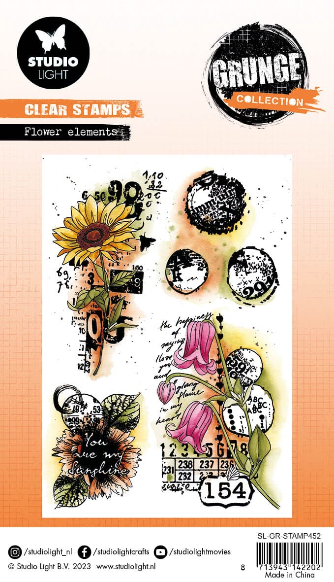 SL Clear Stamp Flower elements Grunge collection 89x132x3mm 6 PC nr.452