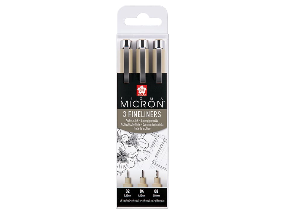 Sakura Pigma Micron Sett, 3 stk, sort 02, 04, 08