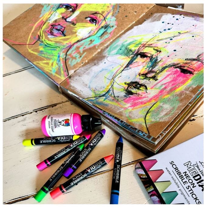 "Ranger Dina Wakley Media Neon Scribble Sticks 4 (6pcs) (MDA85478)